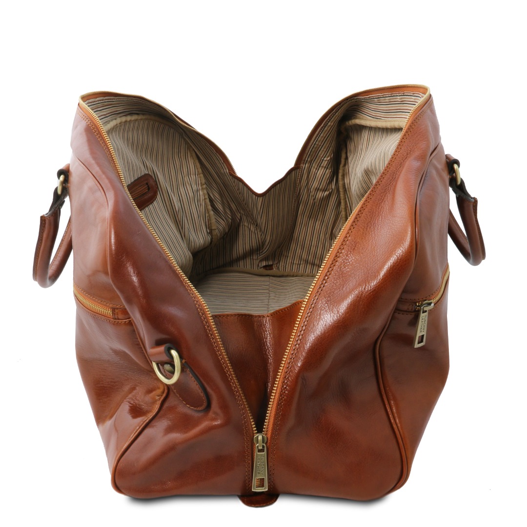 Geen plastic koffer meer, maar een trolley van het mooiste Toscaanse leer. Rol in stijl door de terminal en laat de wereld zien dat u er bent.