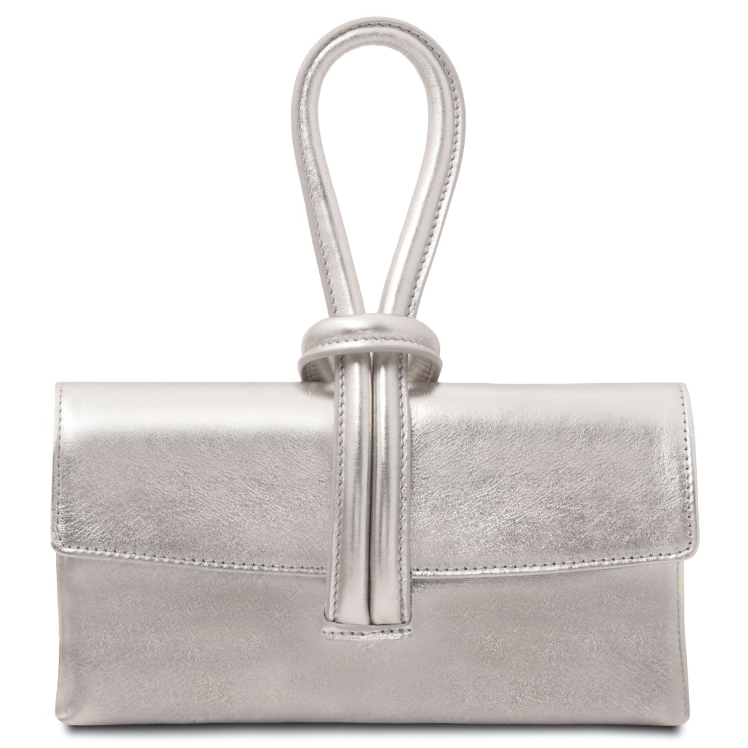 De clutch is gemaakt van soepel metallic leer en is leverbaar in mooie kleuren.