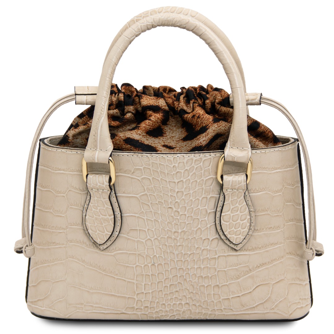 ✓Handtas van leer in krokodillenprint ✓Met koordsluiting ✓Leverbaar in mooie kleuren