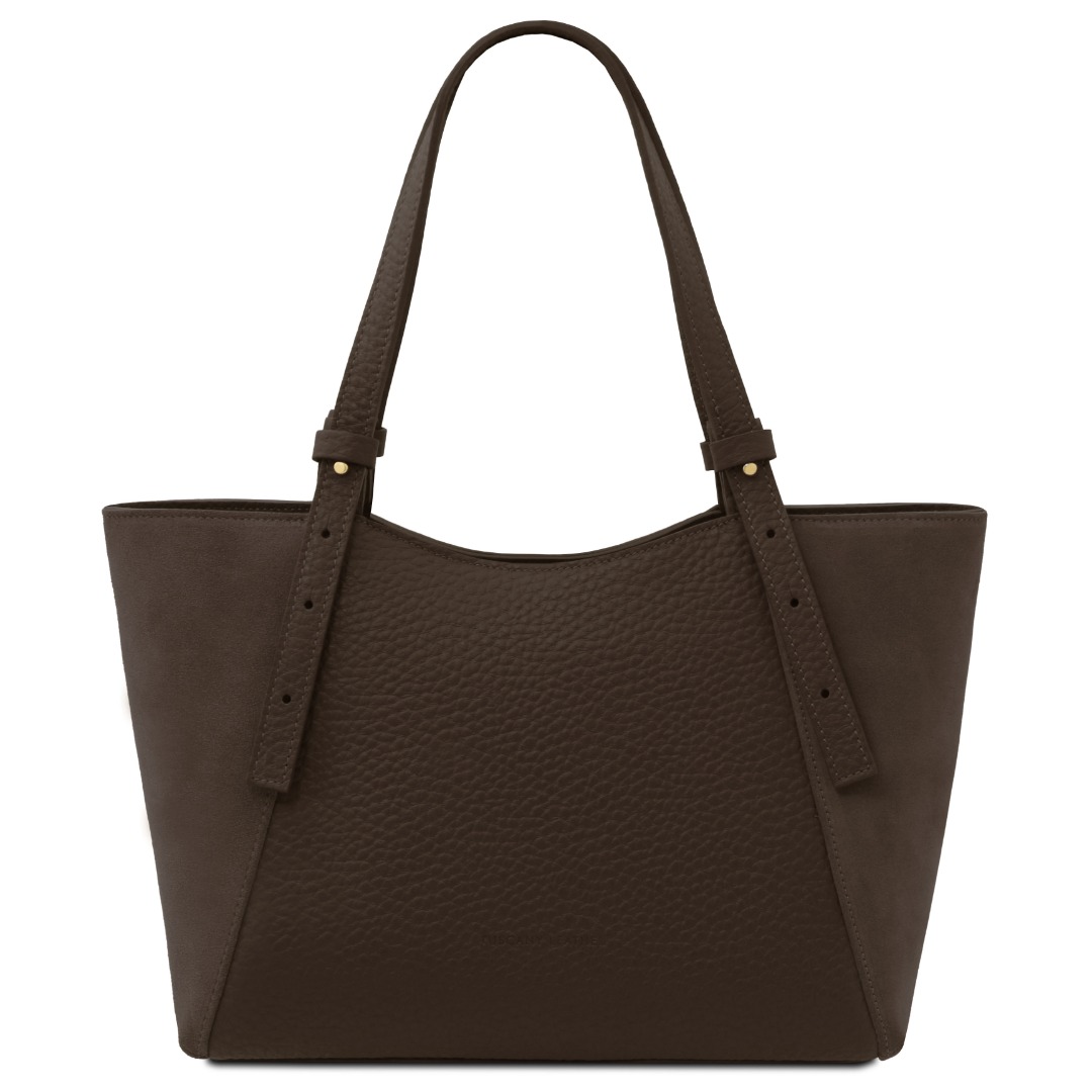 Alle italiaanse leren shoppers van Tuscany Leather worden plantaardig en duurzaam gelooid.