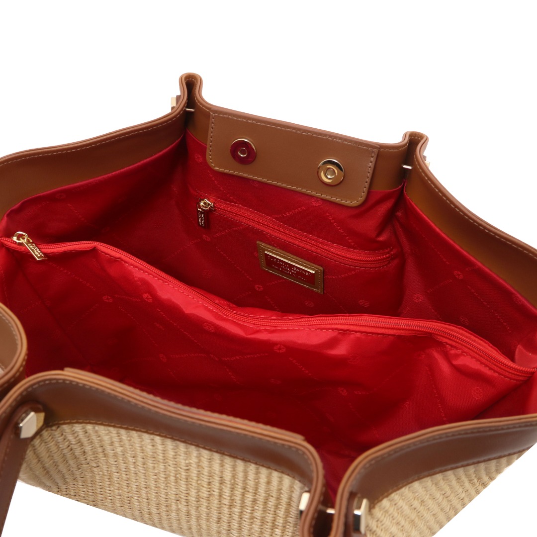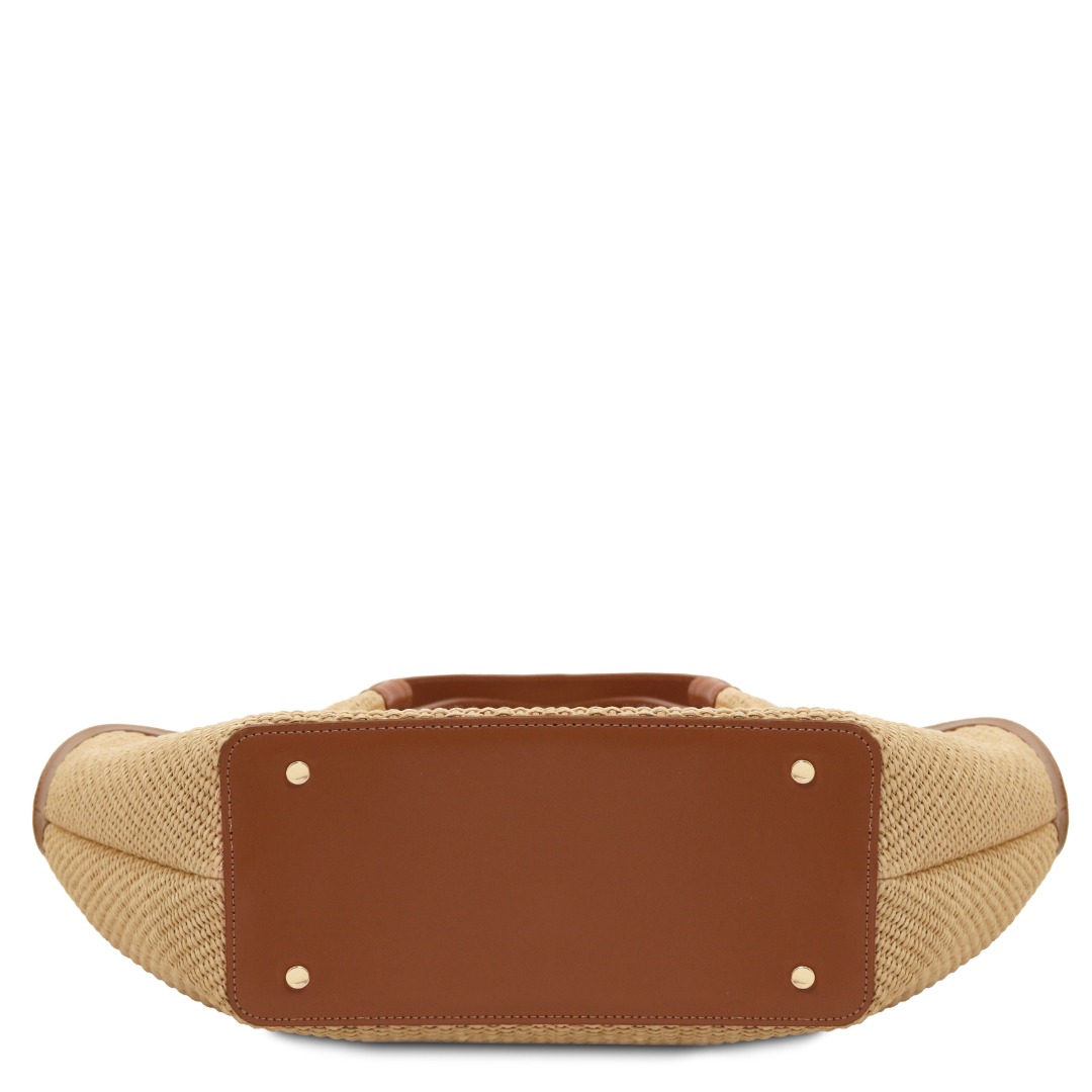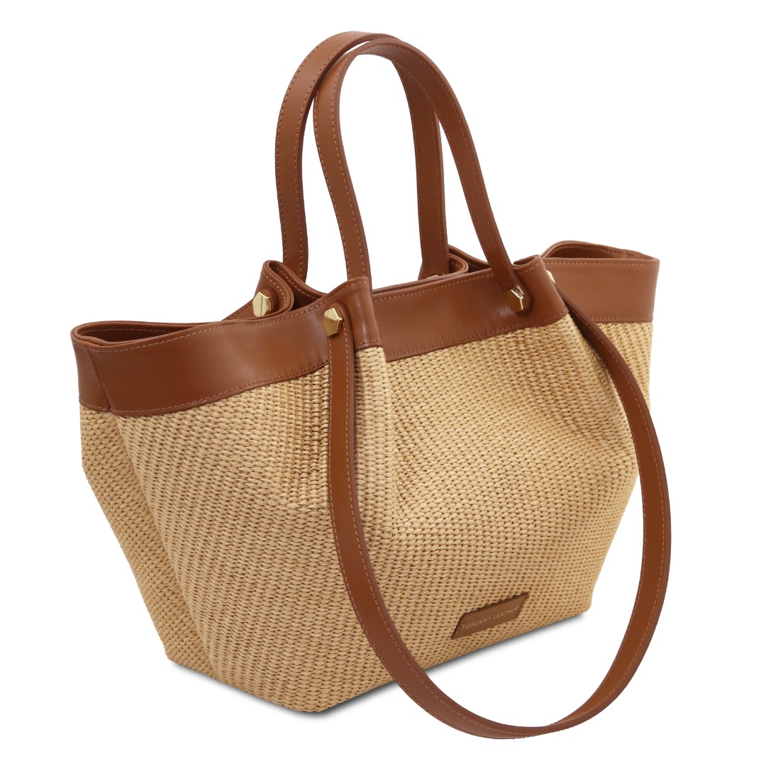 Ontdek de Soleil shopper van raffia en leer - een elegante en ruime tas die zomerse lichtheid combineert met italiaanse luxe.