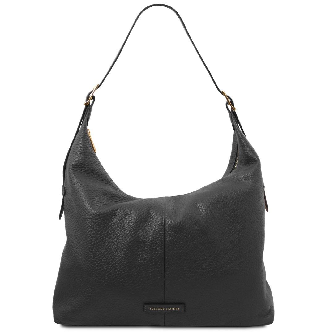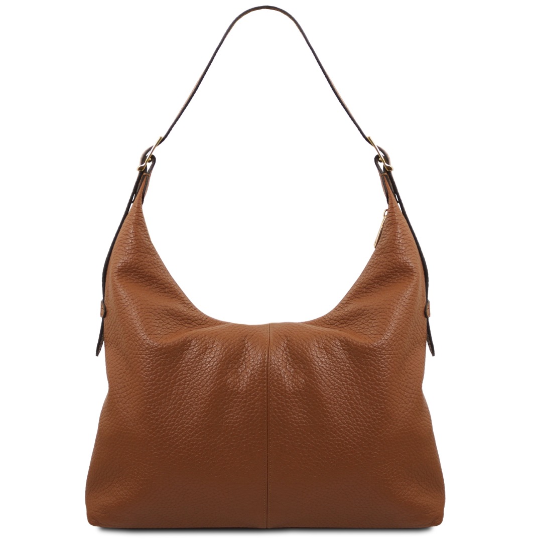 Authentiek Tuscany Leather product met certificaat van echtheid. Deze duurzame ambachtelijk gelooide ruime schoudertas van grofkorrelig leer biedt een perfecte balans tussen souplesse, stijl en functionaliteit.
