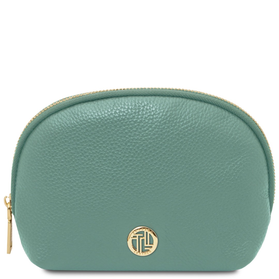 Vervaardigd uit soepel leer met een verfijnd kiezelsteenpatroon, straalt deze toilettas pure klasse uit.