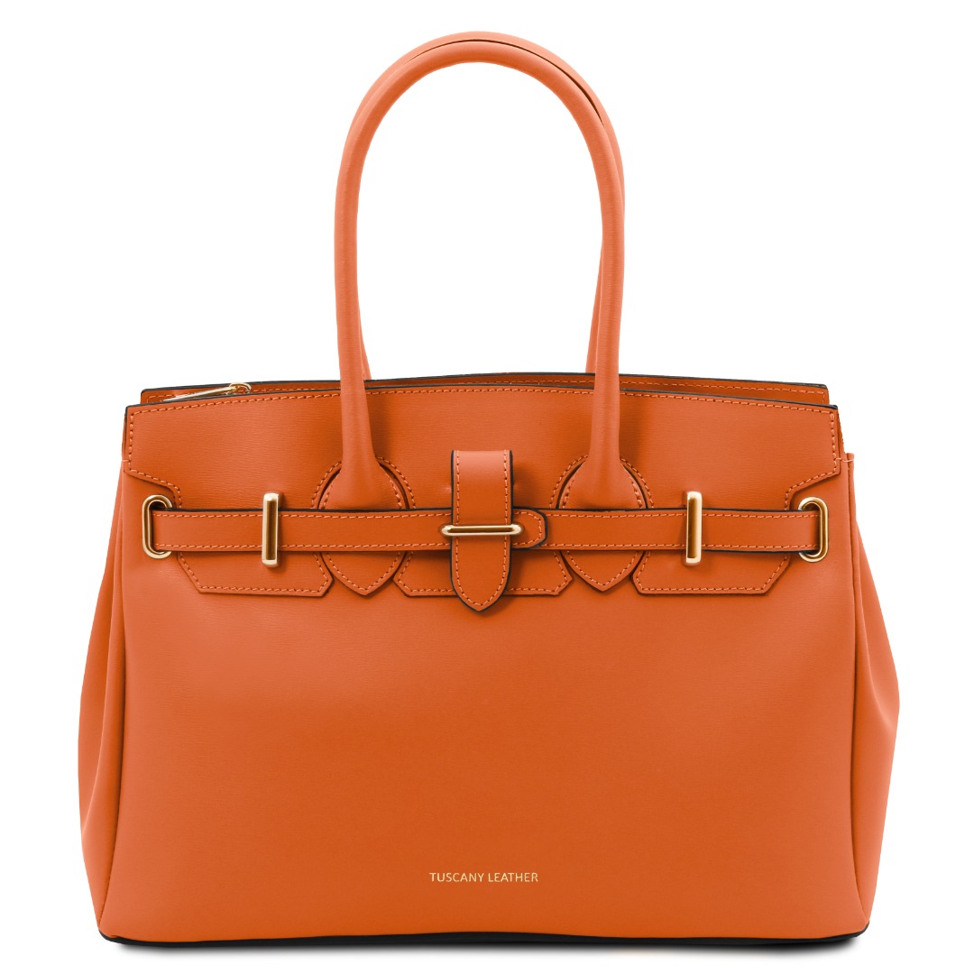 Mooie italiaanse handtas van glad leer, geinspireerd op de befaamde Birkin tas
